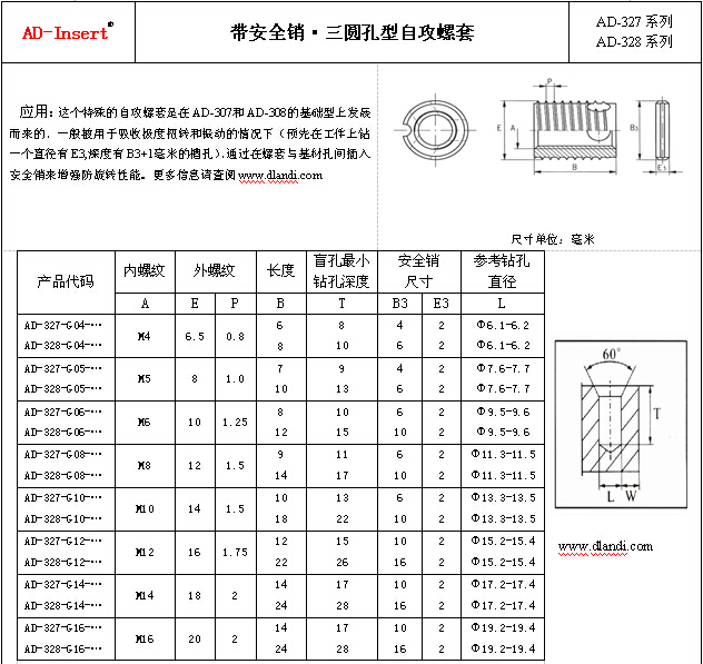 帶安全銷·三圓孔型自攻螺套